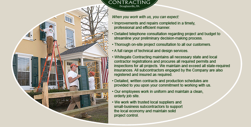 - Whitegate Contracting maintains all necessary state and local contractor registrations and procures all required permits and inspections for all projects. We maintain and exceed all state-required insurances. All subcontractors engaged by the Company are also registered and insured as required.